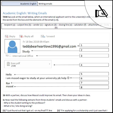 Ein Arbeitsblatt darüber, wie man angemessene Mails an der Hochschule verfasst.