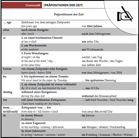 Lerne mit diesem Arbeitsblatt, wie man die Präpositionen der Zeit (z.B. before, after, at, …) verwendet.