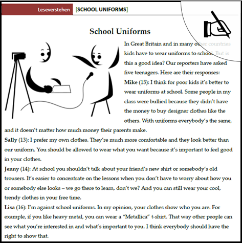Leseverstehen und Schreibaufgabe zum Thema Schuluniformen.