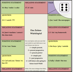 Stichwörter: Spiel / Game, Grammatik / grammar, vermischte Zeiten / mixed tenses, Fragen / questions, Verneinung / negation